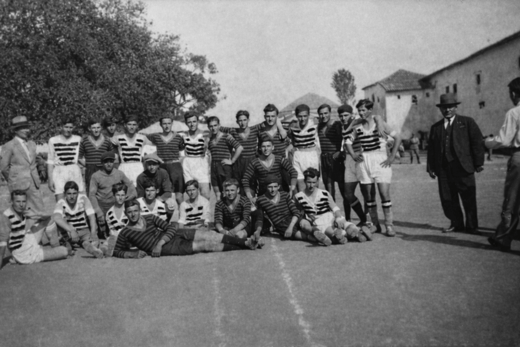 1934 – Από αριστερά : Ανδρέας Μπανταλούκας (Πνίγηκε στο Μενίδι τον Ιούλιο του 1947), Λέανδρος Παπακίτσος (και οι δυο πολυαθλητές), Αφοι Θεοφάνης & Σπύρος Χ. Λαλάκου, Τάκης Παπακίτσος (τον κρέμασαν οι Γερμανοί στη Λαϊκή Αγορά της Άρτας τον Σεπτέμβριο του 1944), Θεόκλητος Μπανταλούκας (‘Ασσος του Π.Α.Ο.Α.) Αφοι Χριστόφορος & Ελπιδοφόρος Αντωνίου (αθλητικός ρεπόρτερ 1933 – 1940). Κάτω δεξιά …μάλλον είναι ο Ευάγγελος Βασιλακόπουλος (τον κρέμασαν οι Γερμανοί τον Ιανουάριο του 1945. Ήταν 21 χρονών) [Φωτο από αρχείο Γεωργίου Κουτρούμπα – Παρουσίαση Κ. Μπανιάς ]