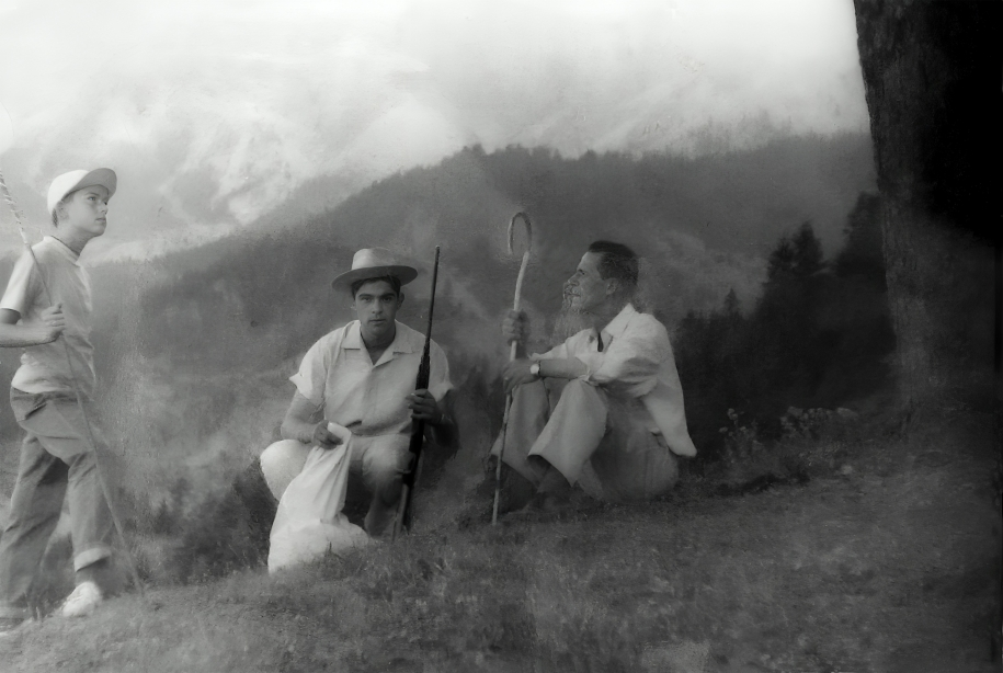 Ο Στέφανος Τόσκας (δεξιά) με τους γιους του, Νικόλαο (στο κέντρο) και Γεώργιο (αριστερά), στη ρίζα ενός γέρικου έλατου. Η φωτογραφία, τραβηγμένη από τον Πέτρο Τσιρώνη, αποτυπώνει μια στιγμή γαλήνης και συνέχειας: πατέρας και γιοι, δεμένοι με τον τόπο και το τοπίο. Στο βάθος απλώνονται τα Τζουμέρκα, άγρια και επιβλητικά. Από εδώ η θέα του χωριού είναι πανοραμική· γι’ αυτό και η περιοχή ονομάστηκε Βίγλα, παρατηρητήριο, ψηλό σημείο ελέγχου και αγρυπνίας. Μια εικόνα όπου το τοπίο, οι άνθρωποι και η μνήμη στέκουν ισότιμα…..
