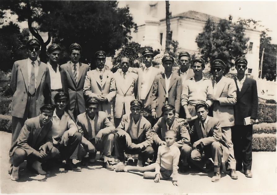 1952 – Αναμνηστική φωτογραφία της 8ης Γυμνασίου Άρτης, στην πλατεία Σκουφά. Στη μέση ο Νίκος Χαλκιάς, καθηγητής Φ.Α. και κάτω μπροστά ο πιτσιρίκος είναι ο γιός του Γιώργος.