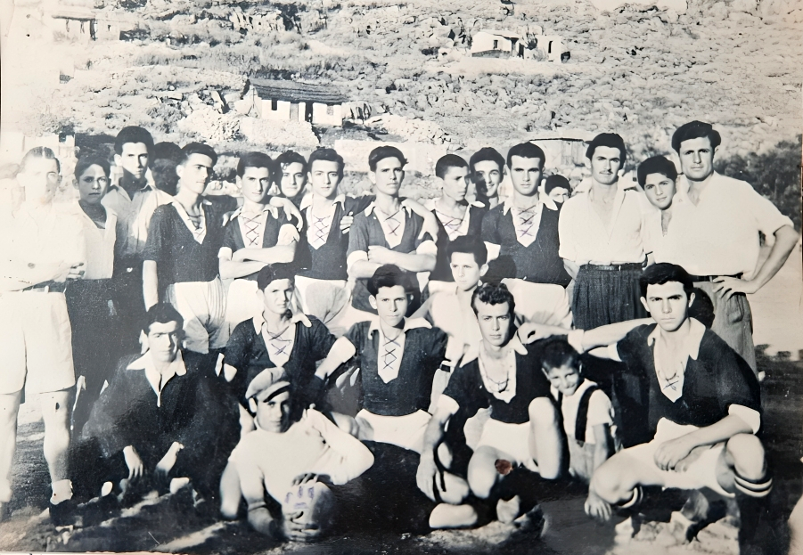 Κάτω : Χαράλαμπος Σκαμνέλος, Σάκης Τσαμπάς, Γρηγόρης (Λάκης) Χριστοδούλου, άγνωστος, Νίκος Τζαχρήστας, Κων/νος Κατσάνος, Χριστόδ. Κεφάλας, Απόστολος Κεφάλας (τέρμα). [Φωτο & Παρουσίαση Κ. Μπανιάς)