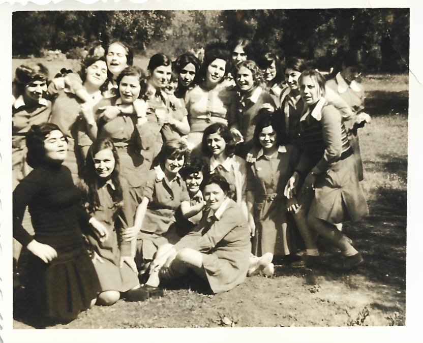 Μια παρέα μαθητριών, γεμάτη ζωντάνια και χαμόγελα, απολαμβάνει ξέγνοιαστες στιγμές σε μια εποχή αθωότητας και νεανικού ενθουσιασμού. Μια εικόνα που κρατά ζωντανές τις μνήμες μιας γενιάς και αναδεικνύει το πνεύμα συντροφικότητας και φιλίας που χαρακτήριζε τα σχολικά χρόνια εκείνης της εποχής.