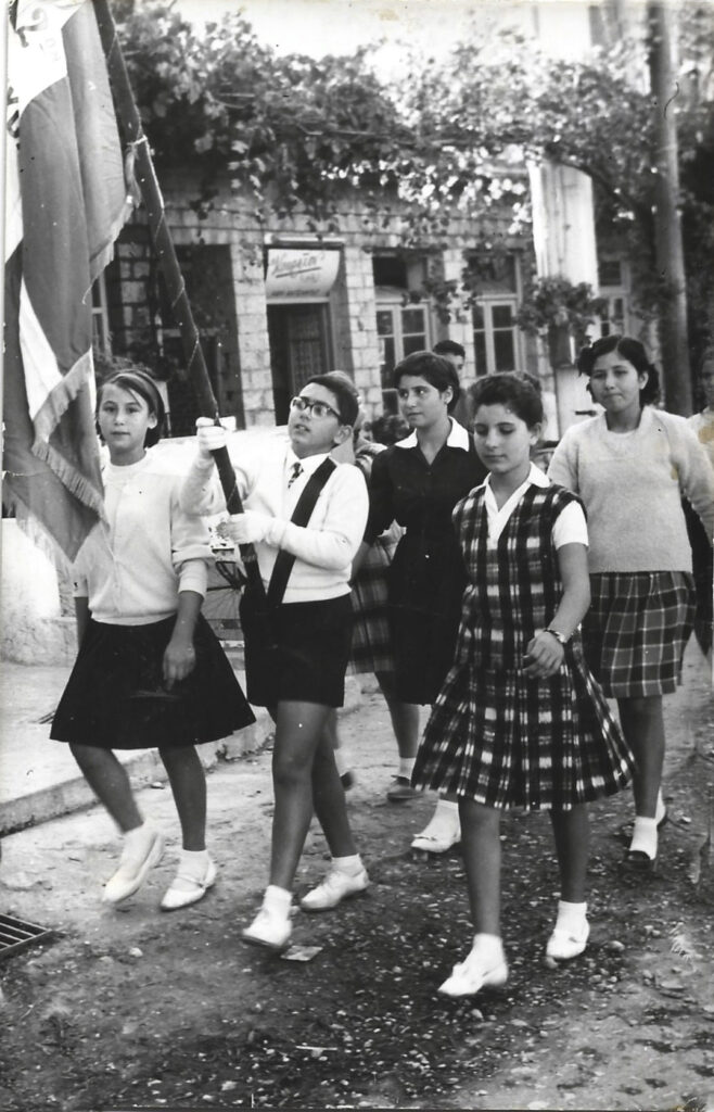 Από την παρέλαση του Β’ Δημοτικού Σχολείου Άρτης, το 1963. Στη “Σημαία” οι Δημήτρης Βάσσος, Έφη Ζορμπά και πίσω Συλβάνα Πιερουτσιόνι και Μαριάννα Παντού. Τότε δεν υπήρχε ενιαίος τρόπος ένδυσης για τους μαθητές του Δημοτικού στις παρελάσεις. (Φωτο από προσωπική συλλογή).