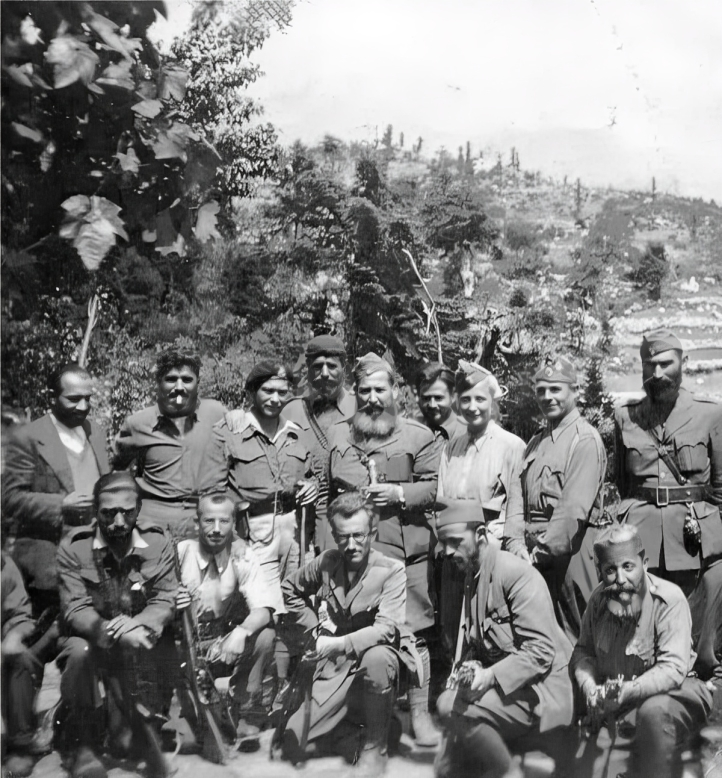 Στη φωτογραφία “1943 – Επιτελείον Εθνικών Ομάδων Ελλήνων Ανταρτών εις ΚΑΨΑΛΑ ΤΖΟΥΜΕΡΚΩΝ. Διακρίνονται καθήμενοι : Απόστολος Ζούκας, Ντίνος Κόκκινος, Γ. Παπαδόπουλος, Αλεξ. Παπαδόπουλος, Αλέκος Ζέρβας, ένας αντάρτης των ΕΟΕΑ. Όρθιοι : Αντ. Πετάσης, Κομνηνός Πυρομάγλου, Ταγματάρχης Βρεττανικής Αποστολής Θέμος Μαρίνος, Ι. Παπαδάκης, Ναπ. Ζέρβας, Κώστας Ιωάννου, το ζεύγος Γκικοπούλου, Μιχαήλ Μυριδάκης και Γεώργιος Αρβανίτης” (Πηγή : Η ΕΘΝΙΚΗ ΑΝΤΙΣΤΑΣΙΣ, Κ. Πυρομάγλου, Αθήνα, 1975)