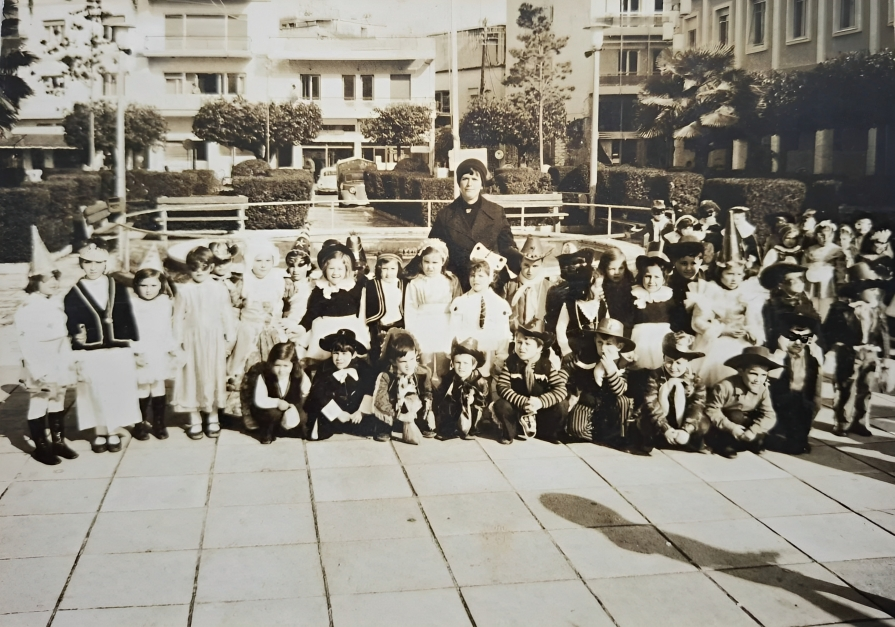 Δεν γνωρίζουμε με ποια αφορμή βρέθηκαν εκεί — σχολική έξοδος, περίπατος ή μια μικρή γιορτή της εποχής — όμως η στιγμή απαθανατίστηκε.