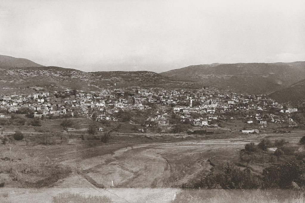 Στη φωτογραφία «Το Κομπότι κατά την δεκαετία του ’50 από το κοντοράχι. Κάτω αριστερά διακρίνεται ο νερόμυλος που λειτουργούσε μέχρι το 1957 περίπου…». Πηγή φωτογραφίας : https://kompoti-artas.blogspot.com/