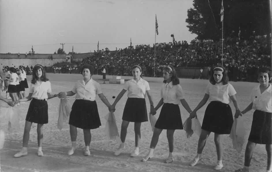 Από τις γυμναστικές επιδείξεις των Δημοτικών Σχολείων Άρτης στις αρχές της δεκαετίας του ’70. Στη φωτογραφία μαθήτριες του Β’ Δημοτικού Σχολείου χορεύουν. Πρώτες οι Χρύσα Πετσιμέρη και Θεανώ Πίτσιλη. (Φωτο από αρχείο Οικογένειας Πίτσιλη)