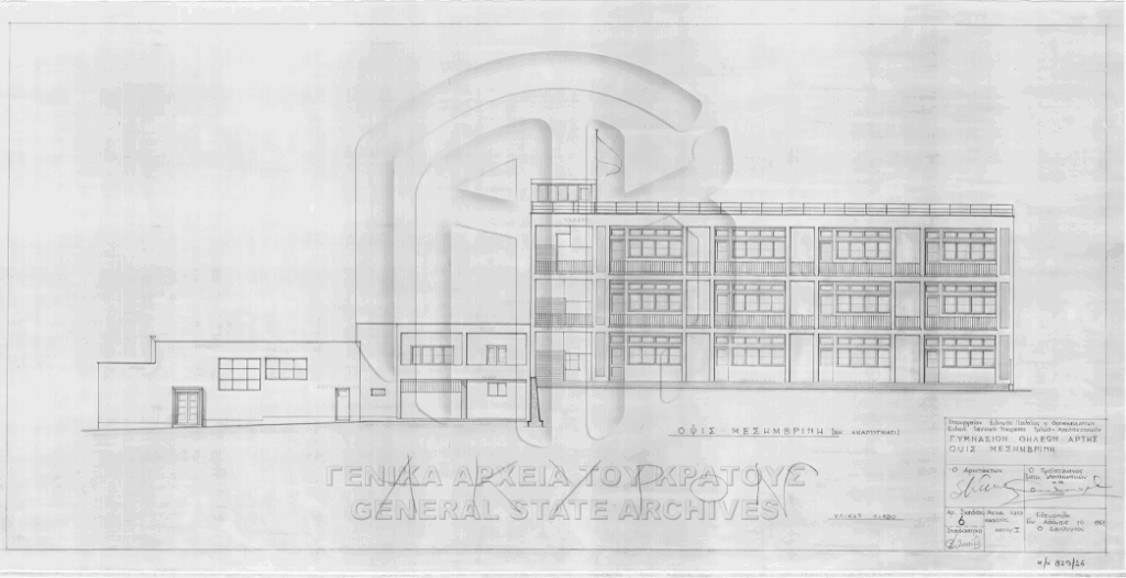 …αρχιτεκτονικό σχέδιο που απεικονίζει την μεσημβρινή όψη του Γυμνασίου. Μπορείτε να δείτε όλα τα αρχιτεκτονικά σχέδια στο λινκ http://arxeiomnimon.gak.gr/browse/resource.html?tab=tab02&id=585995