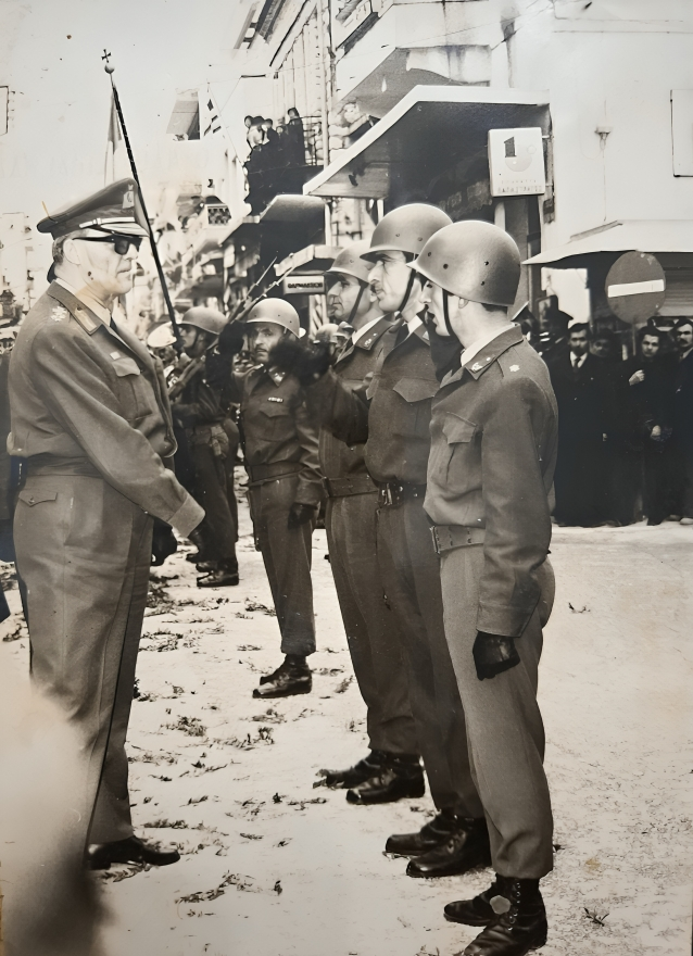 Στη φωτογραφία αποτυπώνεται η επίσκεψη του Φαίδωνα Γκιζίκη, τότε Προέδρου της Δημοκρατίας, στην Άρτα, στις 20 Φεβρουαρίου 1974. Η στάση αυτή έγινε στο πλαίσιο της μετάβασής του από την Αθήνα προς τα Ιωάννινα και συνοδεύτηκε από επίσημη υποδοχή από τις τοπικές και στρατιωτικές αρχές. (Φωτο από αρχείο Σταύρου Μαστοράκη)