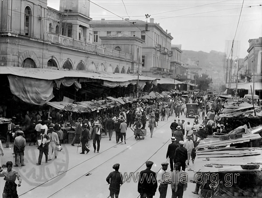 Βαρβάκειος Αγορά, Αθήνα (περ. 1923). Ο χώρος όπου δούλεψε ως παιδί ο Διομήδης Ναούμ. Φωτογράφοι: Βασίλης & Αλέξανδρος Τσακιράκης — Πάροχος: ΕΛΙΑ–ΜΙΕΤ — Πηγή: SearchCulture.gr — Άδεια: CC BY 4.0.