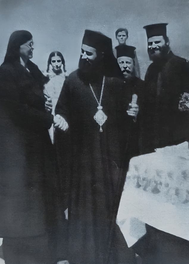 Στη φωτογραφία “1952. Η Σοφία Μάτσου με τον Μητροπολίτη Άρτης τότε Σεραφείμ, κατά τη θεμελίωση του Γηροκομείου, που ιδρύθηκε με δική της δαπάνη”. (Αρχείο Σ. Αλεξίου)
