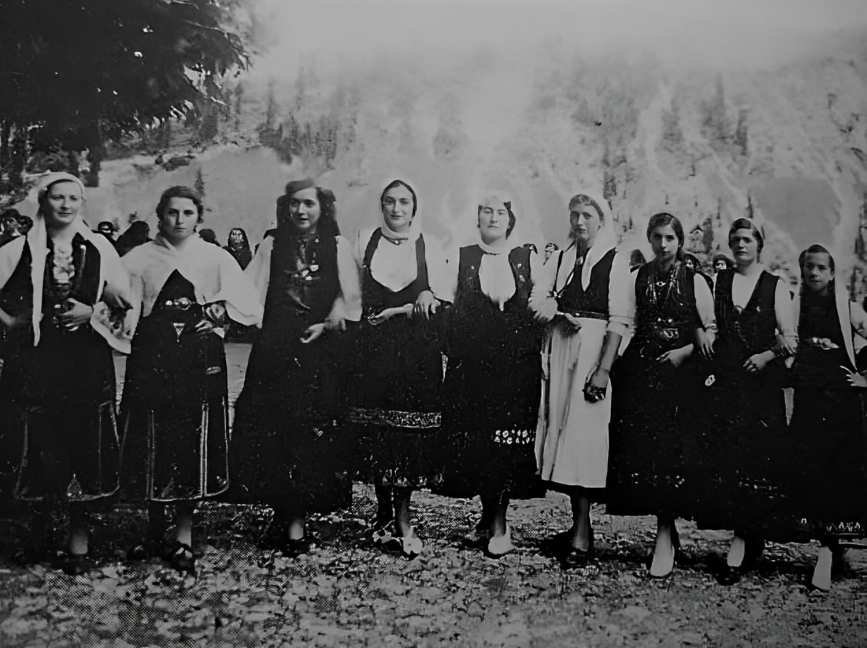 Στη φωτογραφία του Σπύρου Μελετζή “Θεοδωριανίτισες με τα ασημοζώναρα στο πανηγύρι τον Αύγουστο του 1938. Από αριστερά : Ιουλία Παπαδημητρίου (δασκάλα από το Βουργαρέλι), Μαριάνθη Κοντογιάννη, Αγνή Κομπορόζου, Σοφία Τσακωμένου, Ελισσάβετ Λακκοπούλου, Αικ. Παπαδημητρίου, Μαρίνα Τσιρογιάννη, Σπυριδούλα Μαντέλλου, Κική Χάιδου”. (Πηγή : ΤΑ ΘΕΟΔΩΡΙΑΝΑ ΑΡΤΑΣ, Ρήγας Σκουτέλας, Αθήνα, 1994)