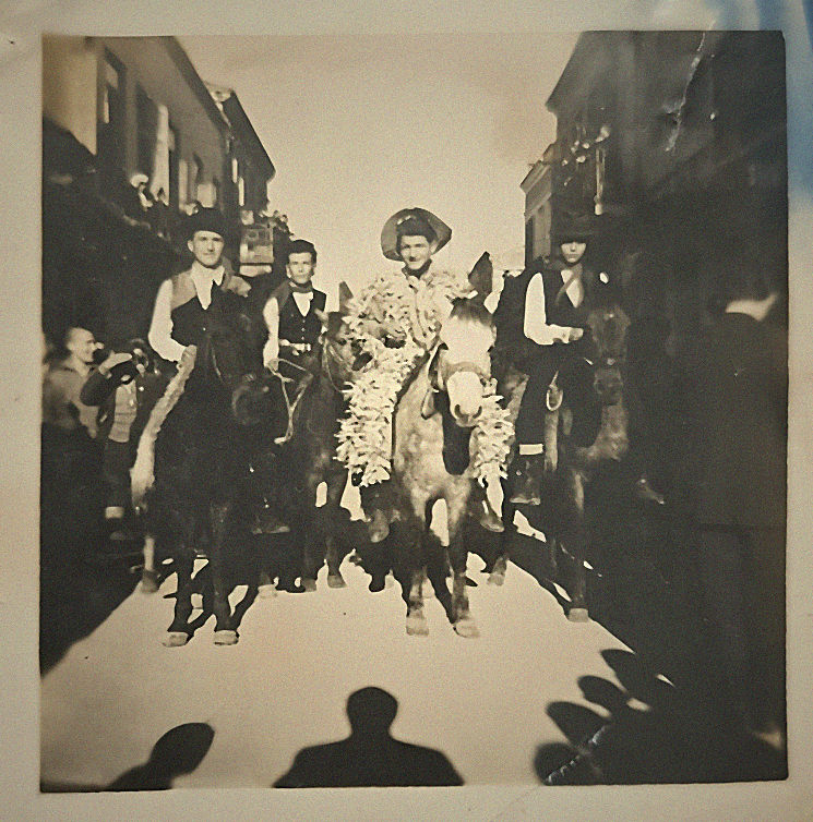 Ανάμεσα στους μεταμφιεσμένους διακρίνονται οι 4 φίλοι Σταύρος Μαστοράκης, Κώστας Παπαγιάννης, Βασίλης Ματσούκας και Μήτσος Ψηλός, ντυμένοι καουμπόηδες, καβάλα στα ζώα τους.