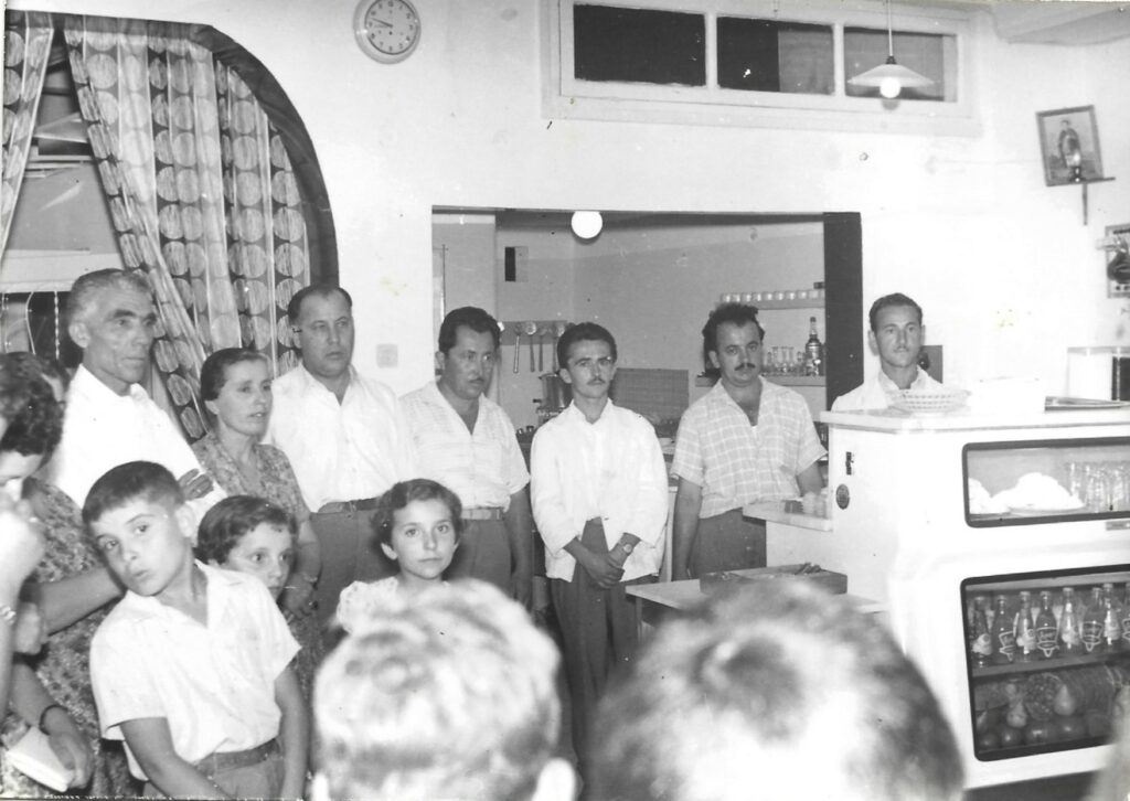 Η πρώτη φωτογραφία είναι από τα εγκαίνια, το 1962: στέκονται ο Βαγγέλης και η Κωνσταντούλα Καρατζά, ο Βασίλης Τσιλιμαντός από το Αγρίνιο, ο κτηματίας Ιωάννης Σχωρτσανίτης και ο Βασίλης Σιαμέτης. Μπροστά ο νεαρός Γιάννης Σερβετάς και τα κορίτσια της οικογένειας, Βιβή και Σοφία Καρατζά — πριν ακόμη γεμίσει ο χώρος τραγούδια, καπνό και κομφετί.
