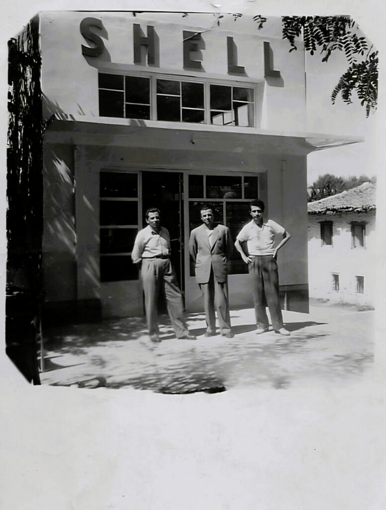 Ο ιδιοκτήτης Κ. Β. Χρηστάκης μπροστά στο Πρατήριο της SHELL, πιθανόν με δύο υπαλλήλους του. Το Πρατήριο βρισκόταν στην Πλατεία Διαμάντη, στην αρχή της οδού Αμβρακίας. (Φωτο από ιδιωτική Συλλογή)
