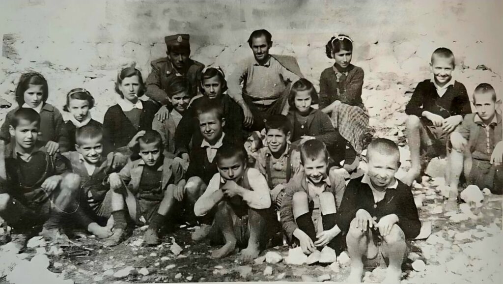 Στη φωτογραφία “Μάθημα για αποφυγή κλοπής φρούρων από τον αγροφύλακα Δημήτρη Παπαβασιλείου (καθιστός πίσω), στο Δημοτικό Σχολείο Λάψαινας Ροδαυγής “. (Πηγή : ΡΟΔΑΥΓΗ, ΕΝΑ ΤΑΞΙΔΙ ΣΤΟ ΧΤΕΣ, Χ. Σταύρος, Άρτα, 2020)