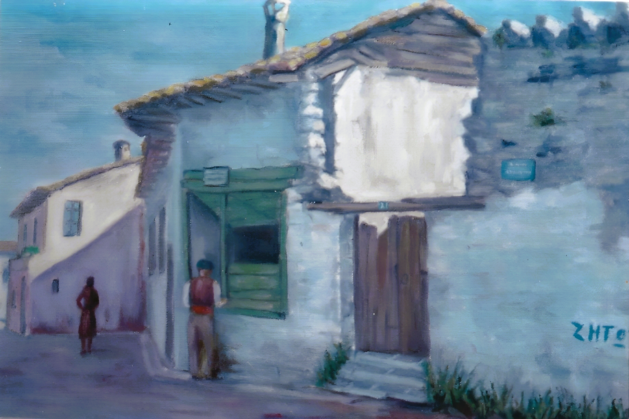 Πίνακας του Τάκη Βαφιά, λάδι σε μουσαμά με τίτλο “Ο φούρνος της Χαρωνούς”. Φωτο από αρχείο Κλαίρης Βαφιά – Μπανταλούκα.