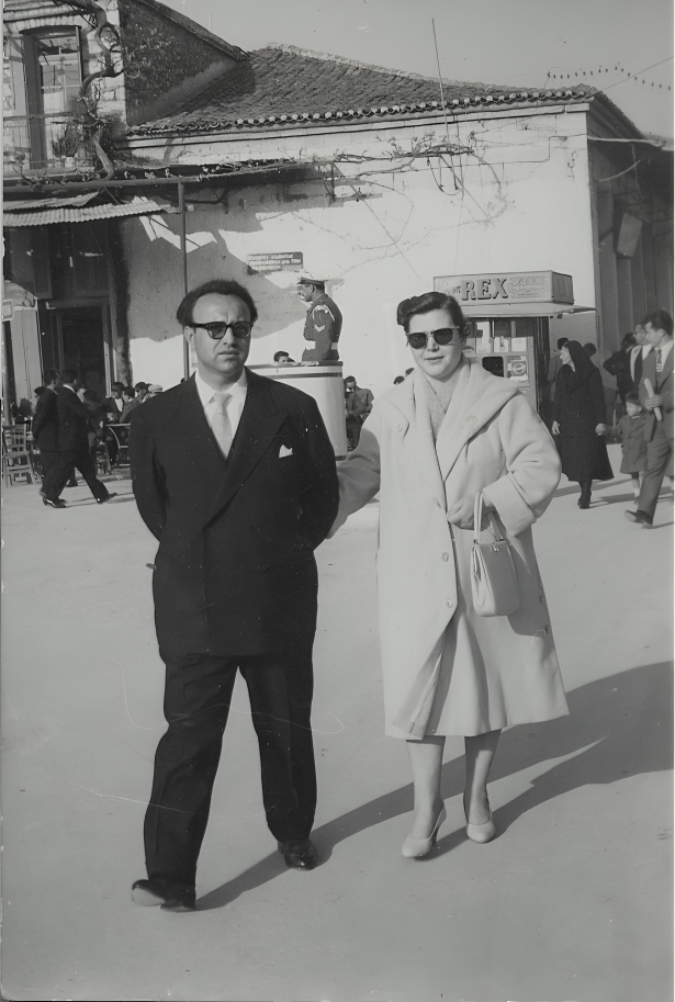 Από τις σπάνιες φωτογραφίες που απαθανατίζεται ο τροχονόμος με τη βαρέλα, στην Άρτα. Στη φωτογραφία ο Αναστασίος Α. Πίτσιλης με την σύζυγό του Αθηνά Διαμάντη – Πίτσιλη (οδοντίατρο), στην πλατεία Κιλκίς. Πίσω τους διακρίνεται ο τροχονόμος μέσα στην “βαρέλα” του, που ρύθμιζε την κυκλοφορία στη διασταύρωση των οδών Σκουφά και Βασιλέως Πύρρου. (Η φωτογραφία είναι από το αρχείο της οικογένειας Πίτσιλη).