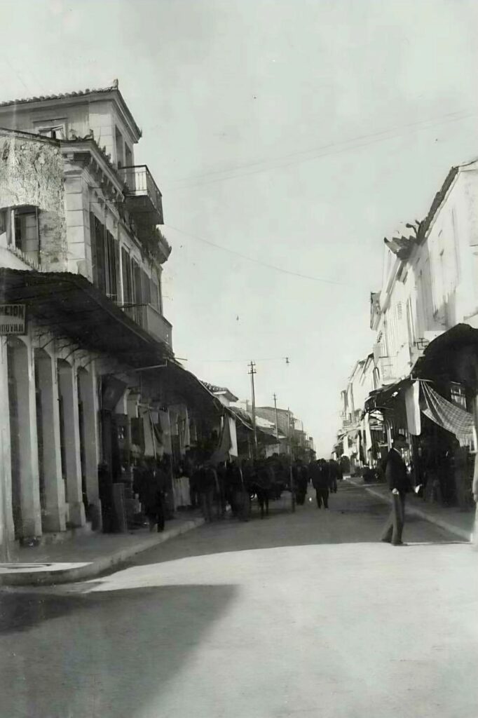 Η φωτογραφία της δεκαετίας του 1940 μάς υπενθυμίζει πως η Σκουφά δεν ήταν απλώς ένας εμπορικός δρόμος, αλλά ένα ενιαίο αρχιτεκτονικό σύνολο. Οι πέτρινες κολόνες, που σήμερα —πλην ελαχίστων— έχουν καταστραφεί ή επενδυθεί, αποτελούν ζωντανό τεκμήριο μιας αισθητικής που δεν χάθηκε από τον χρόνο, αλλά από επιλογές.