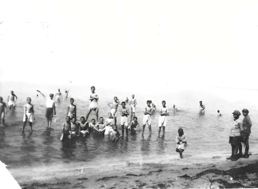 Στη φωτογραφία “1933 – 34 : Τα παιδιά του Ορφανοτροφείου Άρτης σε εκδρομή για μπάνιο στο Μενίδι (Φωτο από αρχείο Κ. Μπανιά)“