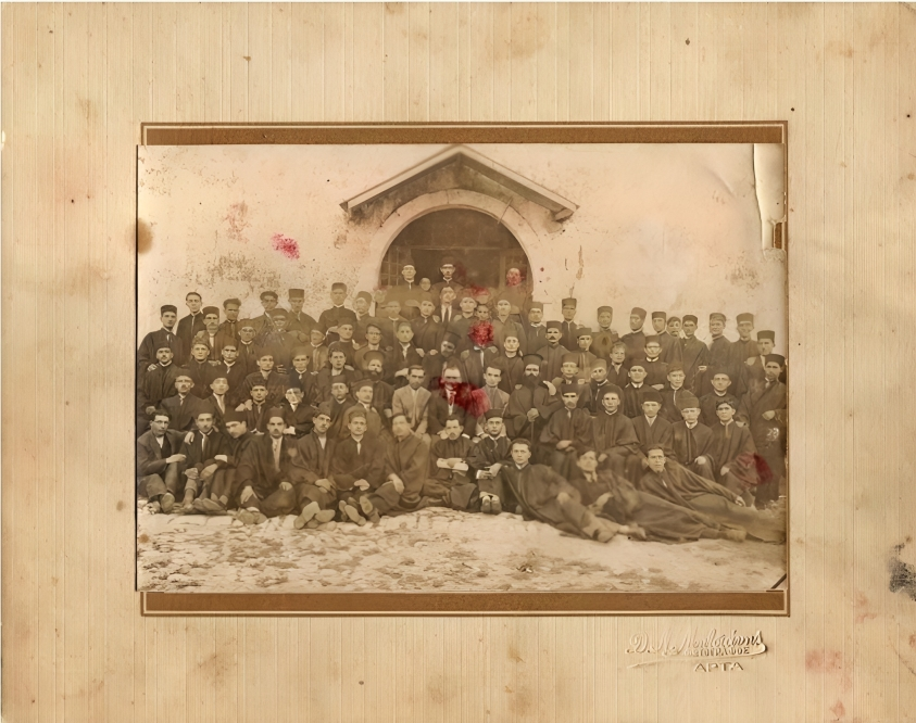 1909 : Μαθητές του Α’ και Β’ Δημοτικού Σχολείου Άρτης. Η φωτογραφία αποτελεί ένα πολύτιμο τεκμήριο της εκπαιδευτικής ζωής της Άρτας στις αρχές του 20ού αιώνα. Οι μαθητές, παραταγμένοι με σοβαρότητα, και οι δάσκαλοι –όπως ο Σπύρος Πίσπιρης, ο Κωνσταντίνος Κοκκίνης και ο Γεώργιος Βαφιάς– αποπνέουν μια εποχή όπου το σχολείο ήταν κέντρο μόρφωσης αλλά και κοινωνικής συνοχής. Παρά τις δυσκολίες της εποχής, η εικόνα μεταφέρει αίσθημα υπερηφάνειας και προσήλωσης στη γνώση, ενώ τα βλέμματα των παιδιών αποτυπώνουν την προσδοκία και την ελπίδα ενός ολόκληρου τόπου.