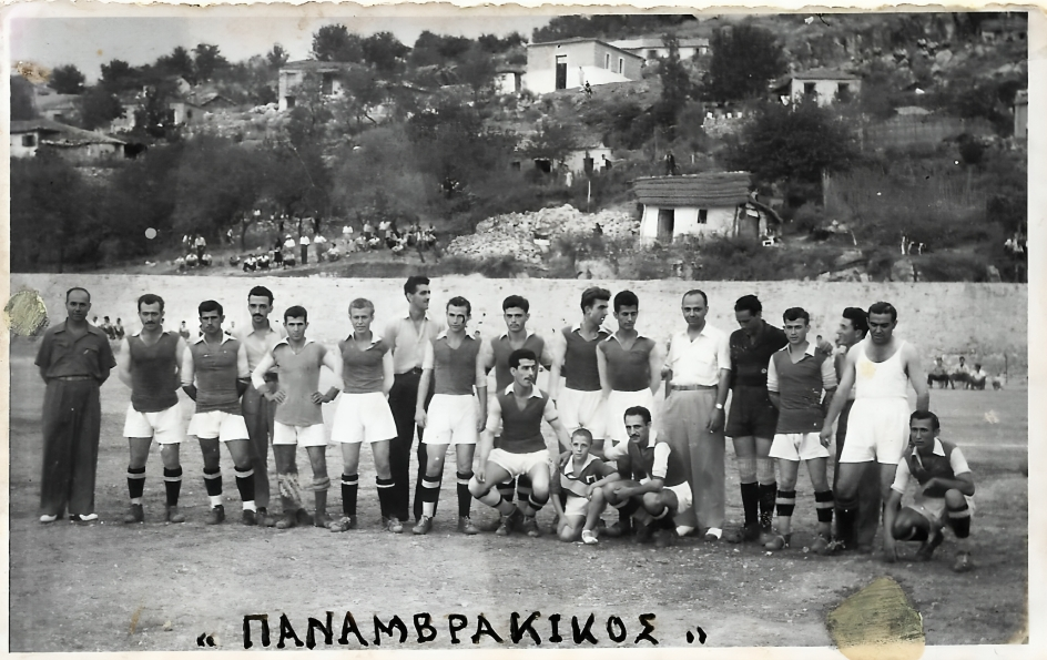 Στο γήπεδο της Άρτας με φόντο ένα χωράφι με ελιές κι ένα σπιτοκάλυβο με αχυρένια σκεπή. Διακρίνονται από αριστερά : Κων/νος Χούμης (Μέγας Γκολτζής. παίκτης του Ο.Σ.Φ.Π. – Εθνικού), Β. Δήμου, Ν. Έξαρχος, Κ. Κεχαγιάς, Κ. Τζαχρήστας, Δ. Σίτας, Κ. Λέτσος, Ν. Αρτέμης, Αν. Ζέρβας, Απ. Ζάζος, Χαρ. Σαλούρος (Πρόεδρος – Φυσικός). Σδούκος, Γ. Λέτσος, Σόλων Μαρκαμπέλας, Βίκτωρ Σακκάς, Ν. Ζάχος, Μ. Τσαντούκλας. Δ. Γιώτης (Μασκώτ) και Ν. Καραμπελιάς. (Φωτο & Παρουσίαση Κ. Μπανιάς)
