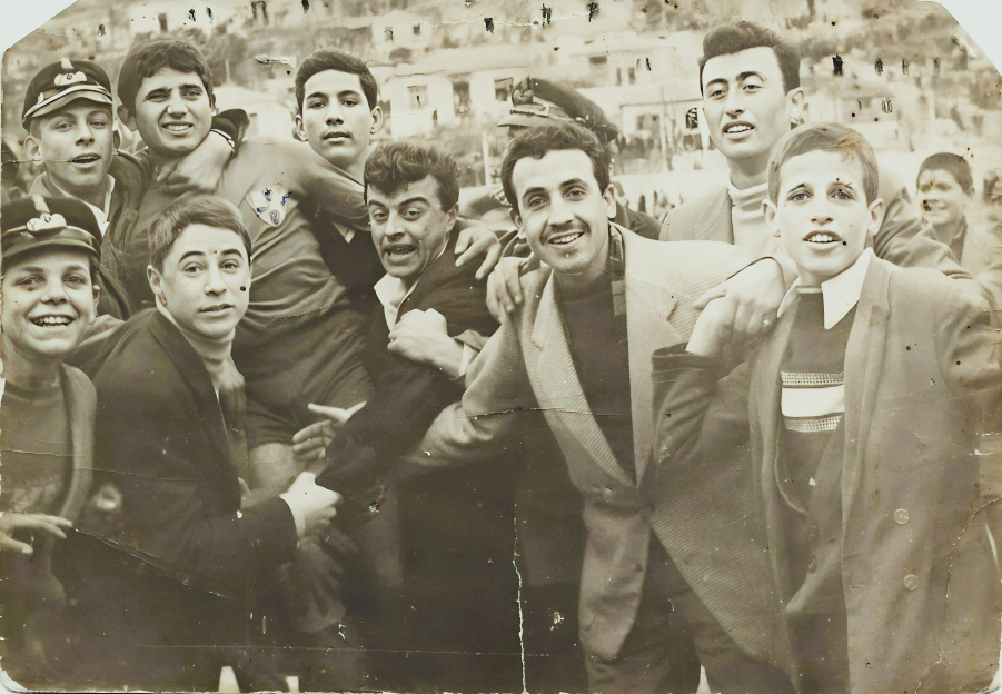 Απρίλιος 1960 – Στο Εθνικό Παναμβρακικό στάδιο Άρτης, στον αγώνα Παναμβρακικού – Παναιγιάλειου (Α’ Εθνική) που έληξε 3 – 0, με γκολ των Π. Σακκά, Γ. Κατωπόδη και Α. Ζέρβα….Και οι φίλαθλοι τους αποθεώνουν…Δεξιά : Θωμάς Τζώρας, …Σωτάκης, Δημ. Λάμπρου, Τάκης Σωτηρίου, Γεώρ. Κίκης (στην αγκαλιά των φιλάθλων), Γεώργ. Γιαννάκης, Κων/νος Αχ. Οικονόμου. (Φωτο & Παρουσίαση Κ. Μπανιάς)