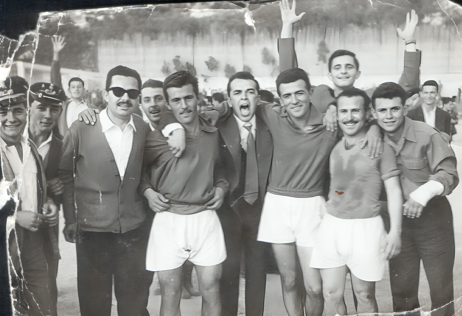 ΑΕΤΟΣ 1957 – 58. Διακρίνονται από αριστερά : Χρήστος Ζανίκας (Γυμνασιόπαις, Κτηματίας), Νίκος Μητσιάνης (Επίτιμος Πρόεδρος Ελεγκτικού Συνεδρίου), …..Παπαδημητρίου, Λευτέρης Μανόπουλος (Νομικός), Νίκος Λαζόπουλος (Νομικός), Γεώργιος Δημόπουλος (Δ’της Ο.Τ.Ε.), και οι παίκτες Θωμάς Κώνστας, Κώστας Αμβράζης και Αντρέας Χριστοδούλου (από Αμφιλοχία). [Φωτο & Παρουσίαση Κ. Μπανιάς)