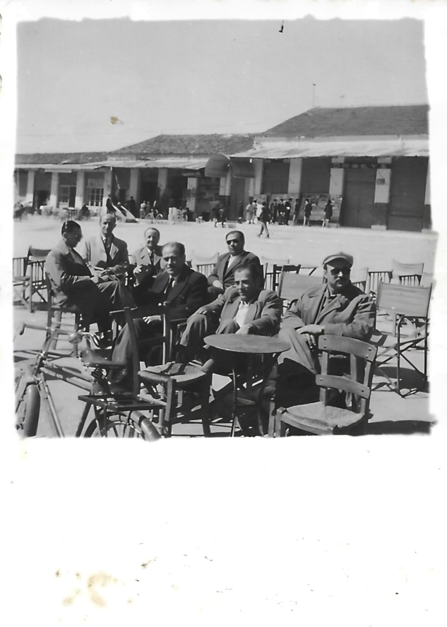Μια φωτογραφία–μαρτυρία από την μεταπολεμική Άρτα, γεμάτη μνήμη και καθημερινότητα. Η πλατεία Κιλκίς ζωντανεύει ως σημείο συνάντησης, κοινωνικής ζωής και πολιτισμού. Στο πρώτο πλάνο, στο καφενείο της πλατείας, διακρίνονται δύο εμβληματικές μορφές του θεατρικού και κινηματογραφικού κόσμου της πόλης: ο Βασίλειος Τσωλιάς, ιδιοκτήτης του ιστορικού κινηματογράφου «Ορφέας», και ο Μάχος Ρίγγας, που αργότερα θα αφήσει το δικό του αποτύπωμα ως ιδιοκτήτης του κινηματογράφου «Ρεξ». Πρόσωπα που συνέδεσαν την Άρτα με τη μαγεία της μεγάλης οθόνης και την ψυχαγωγία μιας ολόκληρης εποχής.