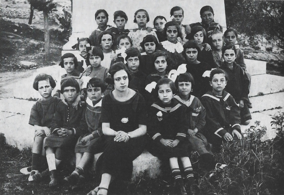 Άρτα 1924 – Οι μαθήτριες της Γ’ τάξης του Δημοτικού Σχολείου Θηλέων (Παρθεναγωγείου) με την δασκάλα τους Αρτεμισία Τσάκαλου στο Ηρώο των Πεσόντων κατά τον πόλεμο του 1897, στην παλιά του θέση. (Φωτο & σχόλιο : Η ΕΚΠΑΙΔΕΥΣΗ ΣΤΗΝ ΑΡΤΑ, Κ. Τσιλιγιάννης, Αθήνα, 2013)