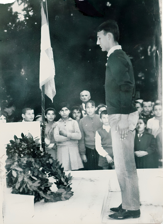 Κατάθεση στεφάνου από τον μαθητή της ΣΤ’ τάξης του Γυμνασίου Άρτης Αποστόλη Τρομπούκη, στο Μνημείο Πεσόντων του 1897, στις 14 Μαρτίου 1968. (Φωτο από αρχείο Α. Τρομπούκη, Παρουσίαση Κ. Μπανιάς).