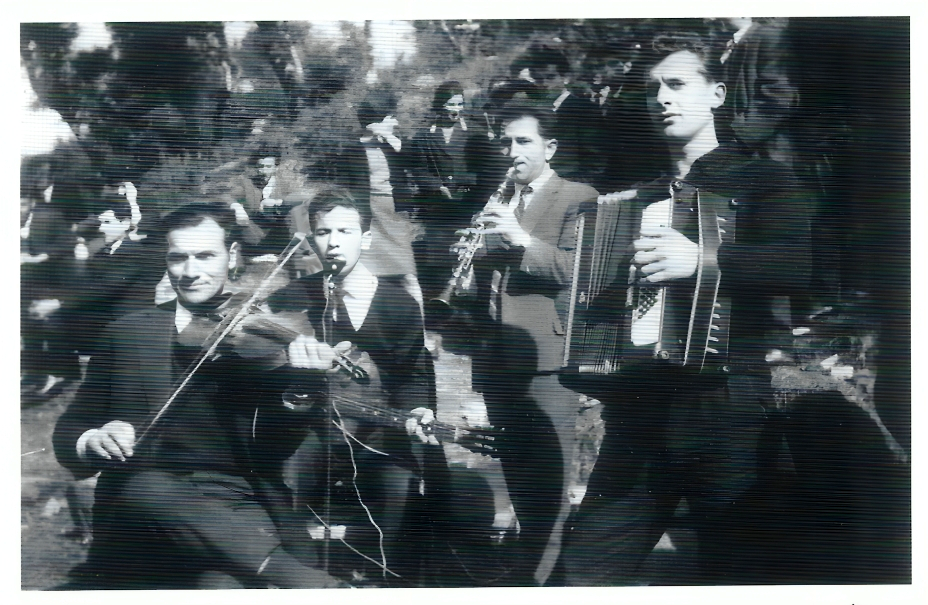 Τοπική κομπανία του Ξεροβουνίου στο πανηγύρι του Αγίου Πνεύματος στη Φανερωμένη, το 1964. Από δεξιά : Βασίλης Σιαφαρίκας με το ακορντεόν, Ευάγγελος Γερούκαρης με το κλαρίνο, Σπύρος Μπάμπαλης στην κιθάρα και στο τραγούδι και Κώστας Μήτσιος (Κωτσογιάννος) στο βιολί και στο τραγούδι. (Πηγή : ΡΟΔΑΥΓΗ ΕΝΑ ΤΑΞΙΔΙ ΣΤΟ ΧΤΕΣ, Χ. Σταύρου, Άρτα, 2020)