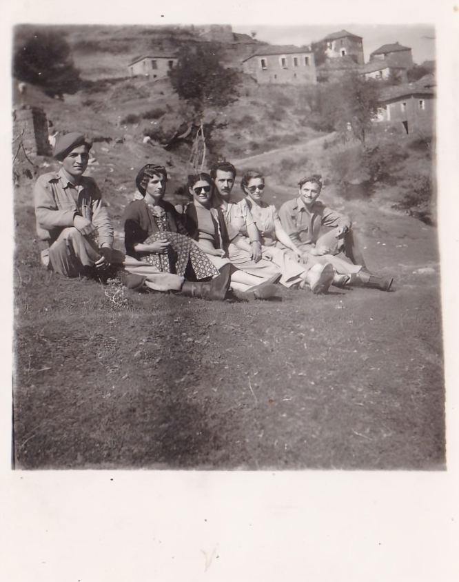Στον Κάμπο των Μελισσουργών. Από δεξιά : Στέλιος Κάτσινος, Αναστασία Μπρισένιου – Κάτσινου, Αντώνης Μπρισένιος, Ευανθία Μπρισένιου – Νάκα, Βούλα Κολιοπάνου – Κάτσινου και Γιάννης Κολιοπάνος. (Φωτο από συλλογή Ε. Κ.)