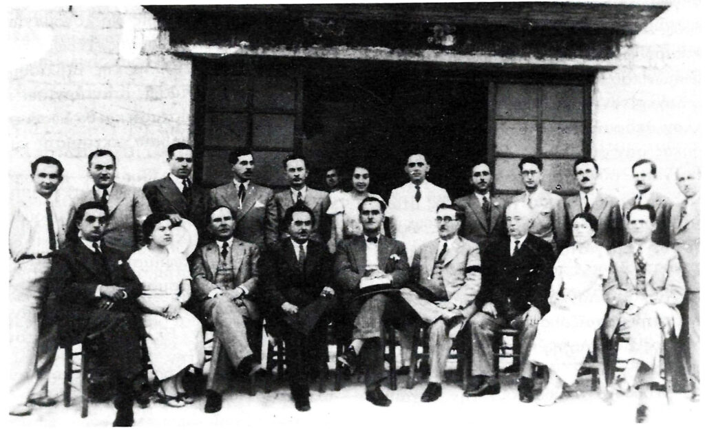 25 – 03 – 1937. Καθήμενοι εξ αριστερών : Βασίλειος Αναγνωστόπουλος (Φιλόλογος), Σοφία Σαρλή (Γαλλικών), Ν. Γιώτης (Γαλλικών), Γ. Παπανικολάου (Φιλόλογος), Σπ. Μαυρομάτης (Φυσικός), Ν. Μπλέτσης (Φυσικός), Αρ. Δημητριάδης (Γυμναστής), Μαρ. Οικονόμου (Φιλόλογος), Χρ. Αλεξίου (Φιλόλογος).