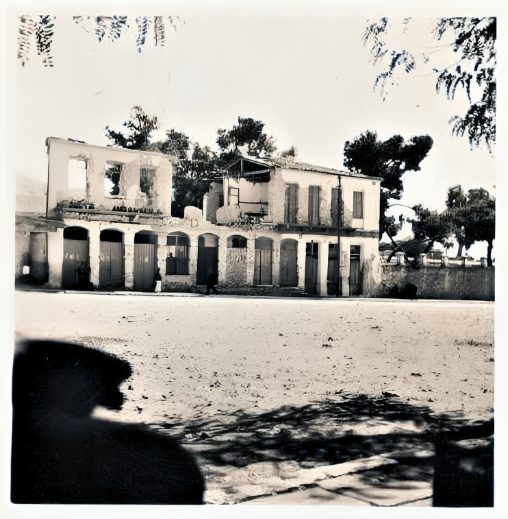 Στην φωτογραφία με τίτλο ”Arta, une partie bombardee” (Άρτα, ένα μέρος της βομβαρδισμένο), φαίνεται ότι έχει απομείνει από το Χάνι του Γιωργόπουλου στην Πλατεία Κιλκίς, μετά τον βομβαρδισμό της 19ης Απριλίου 1941. (Φωτο από το αρχείο του Γεωργίου Σιούλα στην “Ιστορία της σύγχρονης Ελλάδος 1909-1974”)