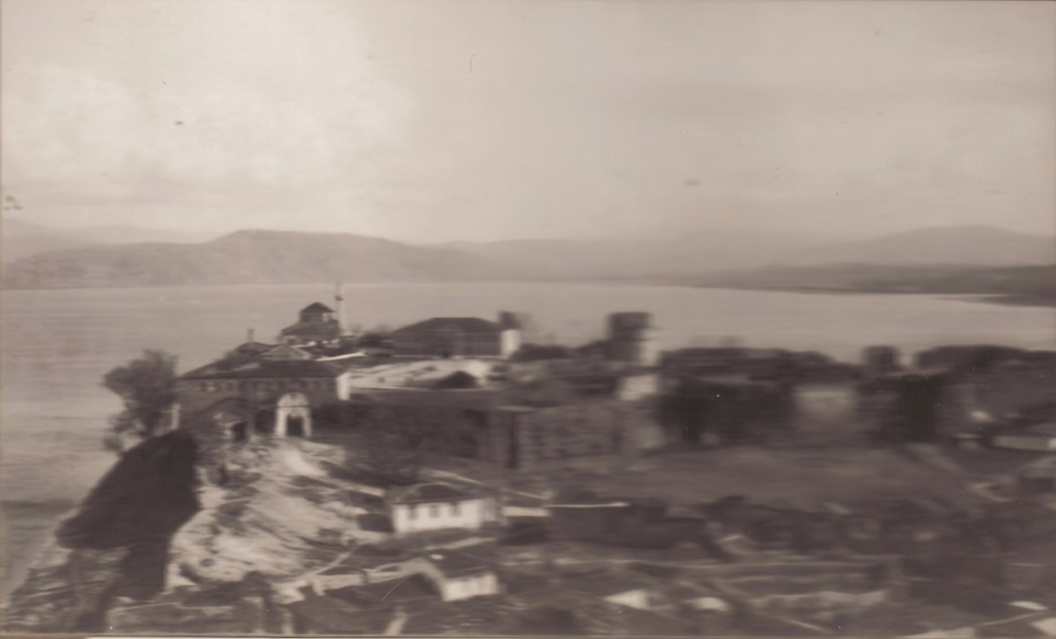 Η δεύτερη φωτογραφία έχει τον τίτλο “Η θέα του φρουρίου και της λίμνης από έναν μιναρέ” – The second photo with the title “View of the fort & Lake from a minaret”.