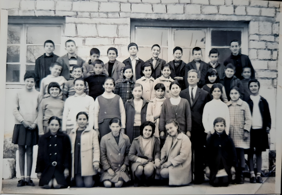 Αναμνηστική φωτογραφία της Δ’ τάξης του Β’ Δημοτικού Σχολείου Άρτης με δάσκαλο τον Αριστοτέλη Κράβαρη.